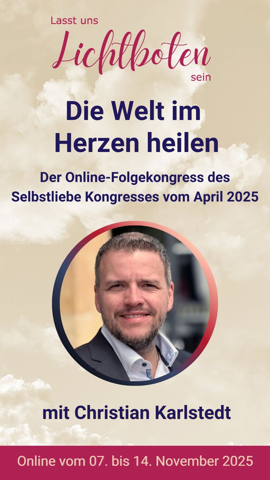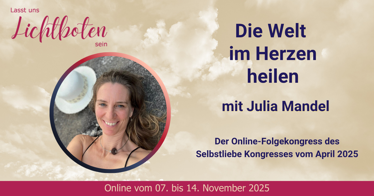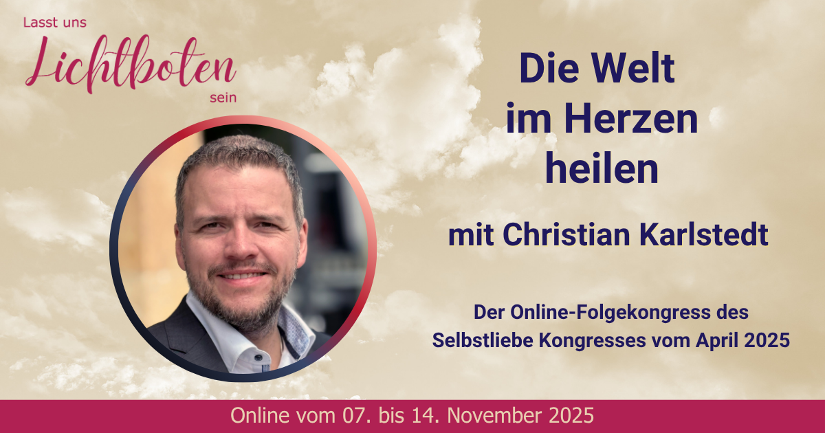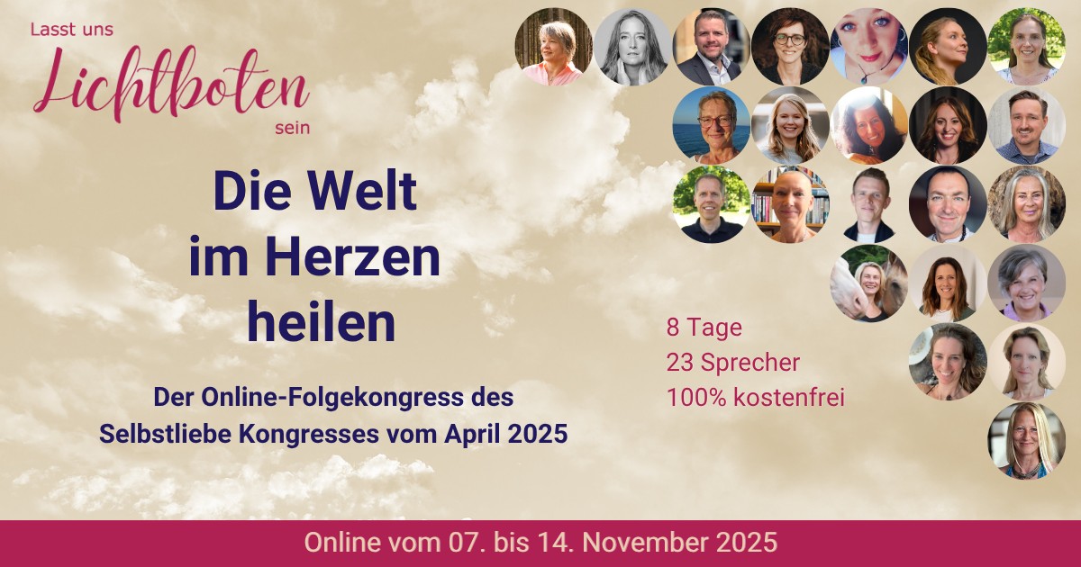 Der kostenlose Online-Kongress „Die Welt im Herzen heilen – Wie Selbstliebe äußere Wirkung entfaltet“ (7.–14. November 2025) lädt dich ein, wieder mit deinem Herzen, deiner Wahrheit und deiner inneren Kraft in Verbindung zu kommen.